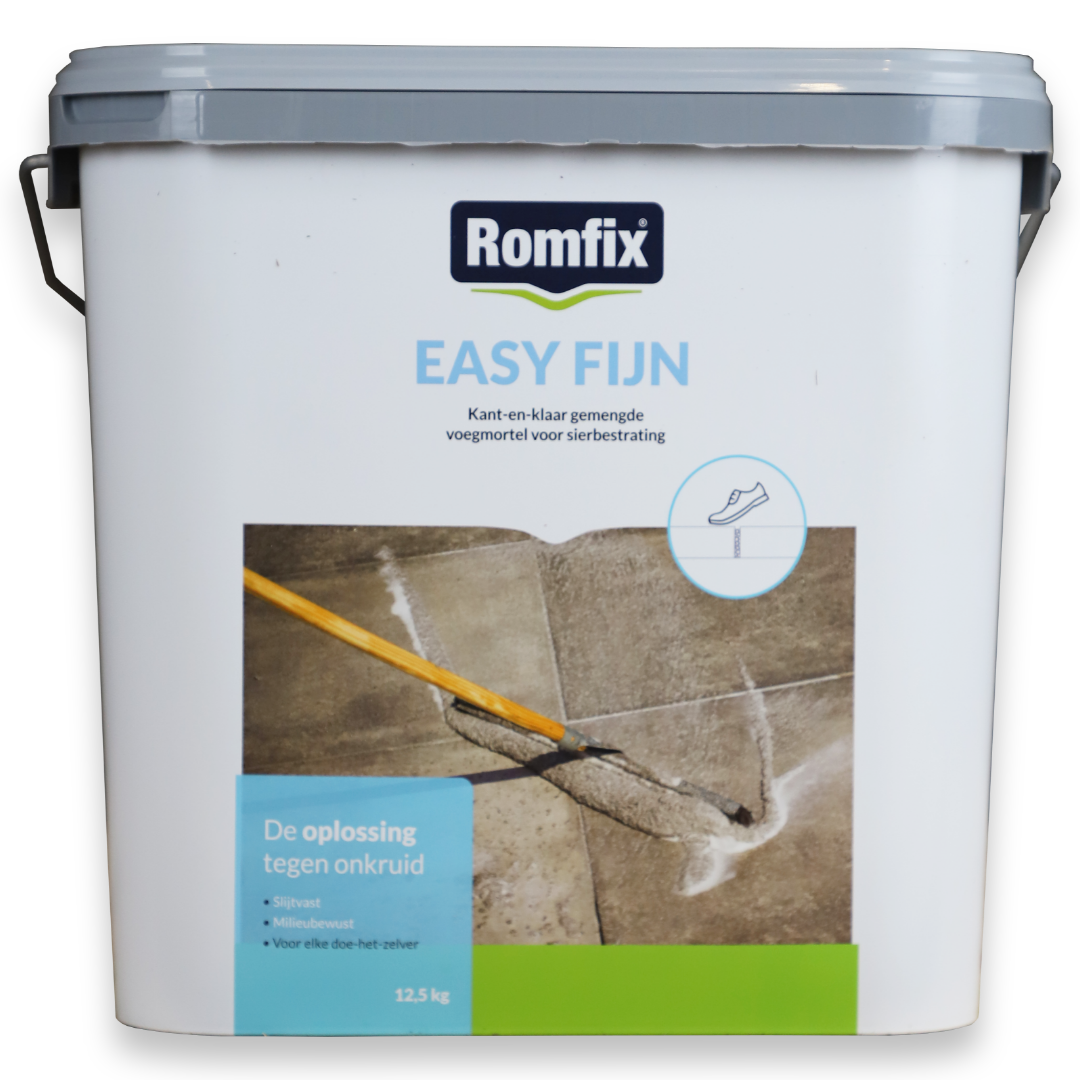 ROMFIX Easy Fijn is een 1-component kunsthars polymeer voegmiddel dat speciaal is ontwikkeld voor het fijne segment: particuliere tuinen, terrassen en opritten tot een belasting van 3,5 ton. Ideaal dus voor de meeste woonomgevingen.
